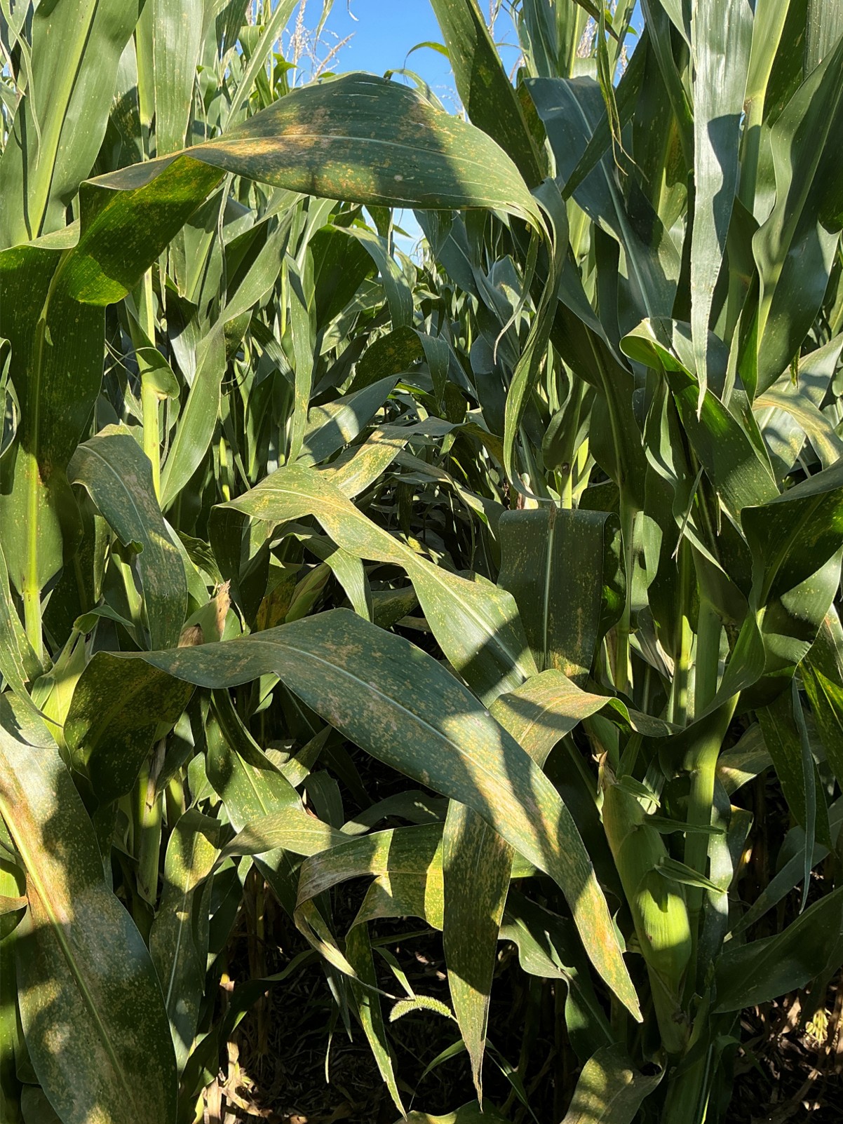 Southern rust is favored by warm temperatures over 77°F and high relative humidity. Spores travel northward with weather systems. When conditions favorable for disease development persist for an extended period, severity can quickly reach epidemic levels.