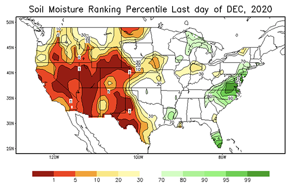 The ag meteorologist doesn’t think the weather conditions are shaping up for a repeat of the 2012 drought. “There is still reason to be concerned about achieving trendline yields due to current dryness. We will need noticeable improvement in the soil moisture profile during the last half of February into March to change yield forecasts.”