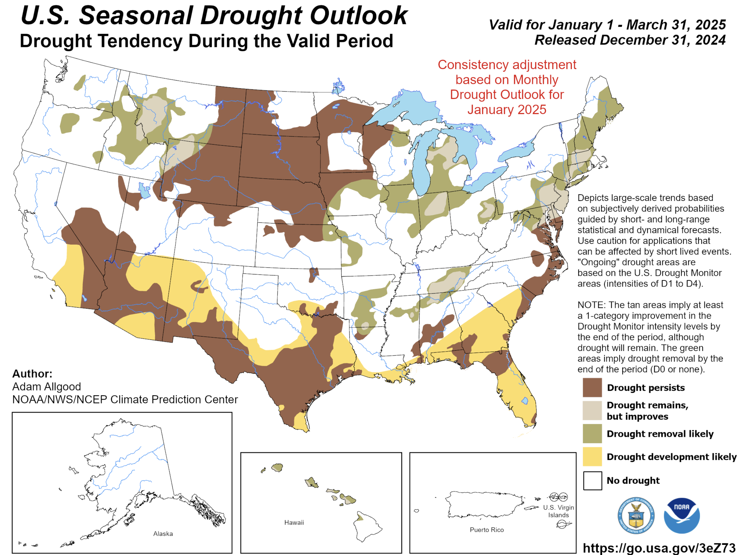 Some of that same area along the Ohio Valley could become saturated as La Niña is known for bringing good spring precipitation.
