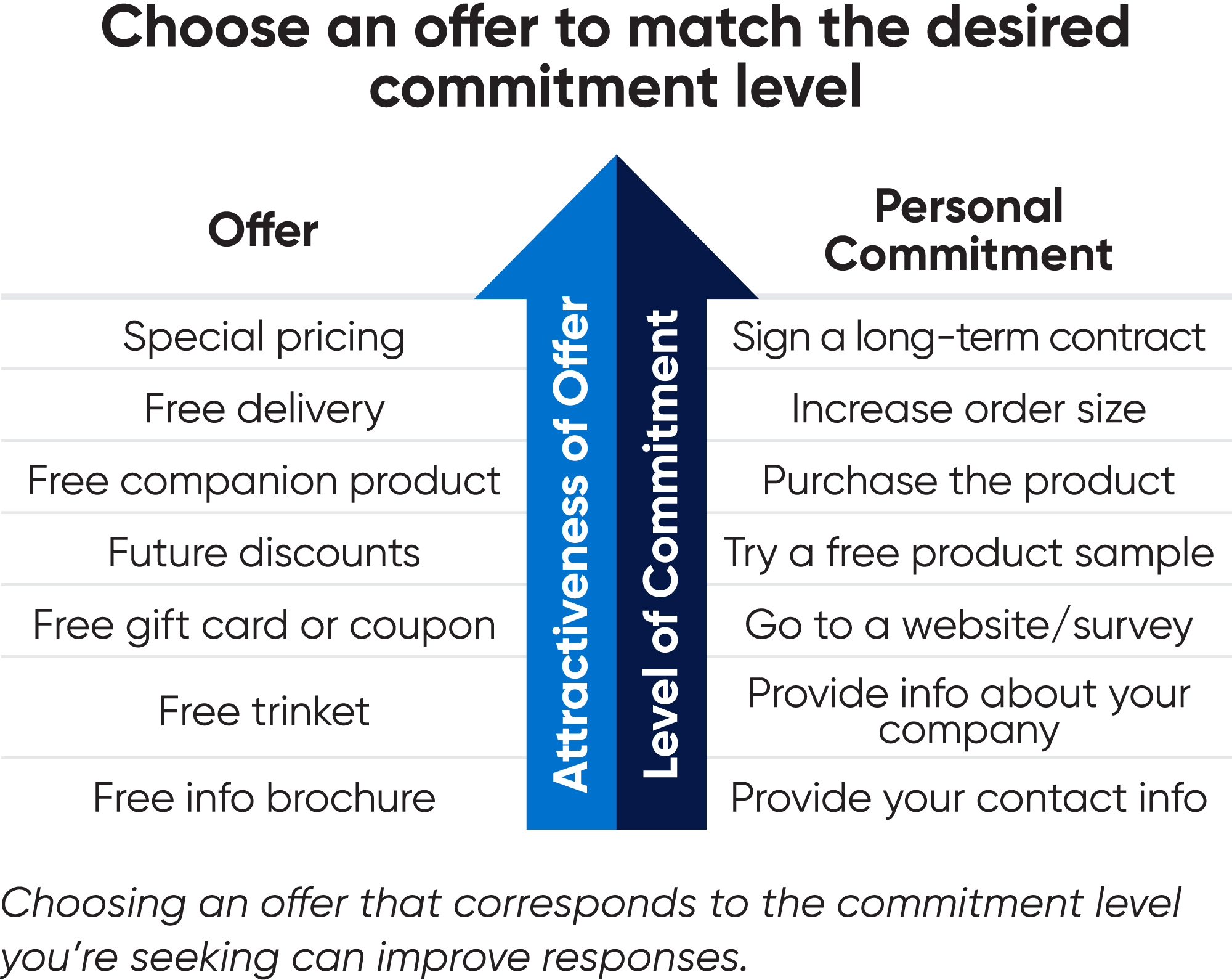 Once you have a good list, the next most important element is your offer. The offer provides an incentive to your recipients, encouraging them to take action. Typically, 25% of the success of a direct mail campaign lies in the offer. In choosing what to offer, keep in mind that self-interest is the primary motivator for most people. They’ll want to know, “What’s in it for me?” So, the more your audience connects with an offer, the more likely they are to take action. One study showed that 65% of people who took action after receiving direct mail did so because of the offer or promotion.1