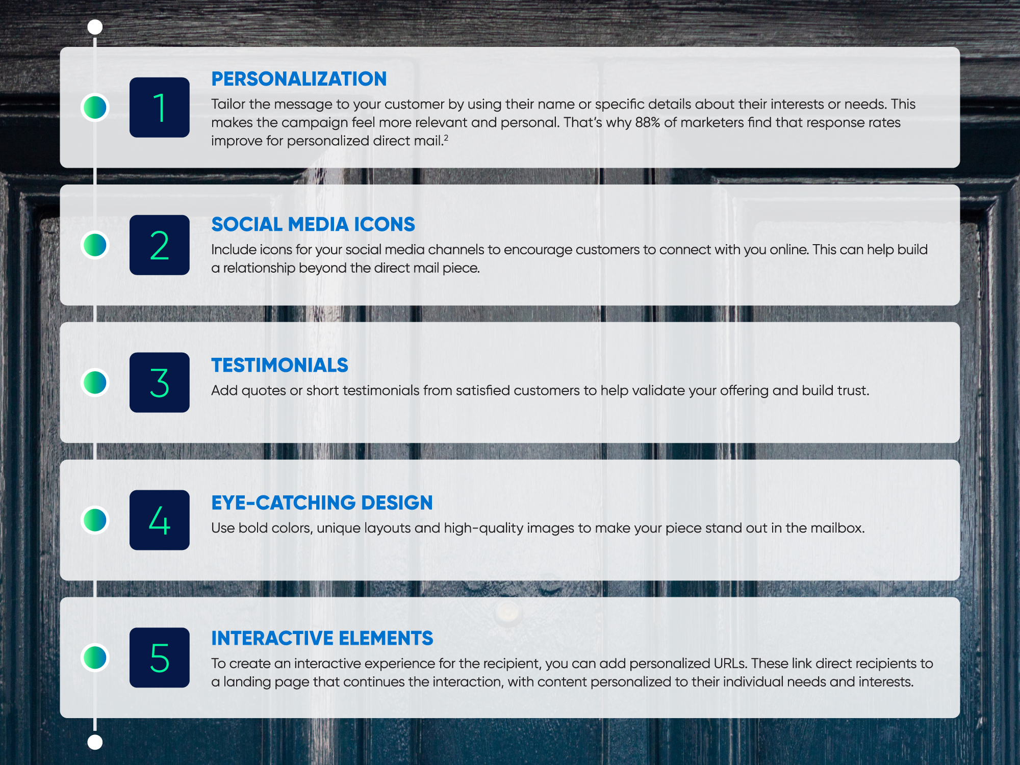 For increased success, consider adding more elements to your direct mail campaign to make it more engaging.