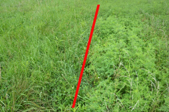 Ragweed and other broadleaf weeds can limit forage production and pasture utilization while crowding out valuable forage. A few months after an application of new NovaGraz™ herbicide near Sleeper, Missouri, the treated (left) side of the photo contains a desirable mix of grass, white clover and annual lespedeza. Broadleaf weeds dominate the untreated portion (right).
