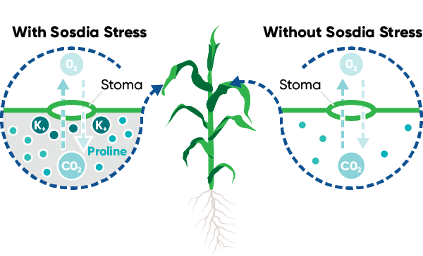 ![]() | Osmolytes are a natural compound found within plants that helps neutralize a crop’s reaction to abiotic stress. Sosdia Stress helps crops with lower osmolytes to react more similarly to crops with higher levels of osmolytes. |