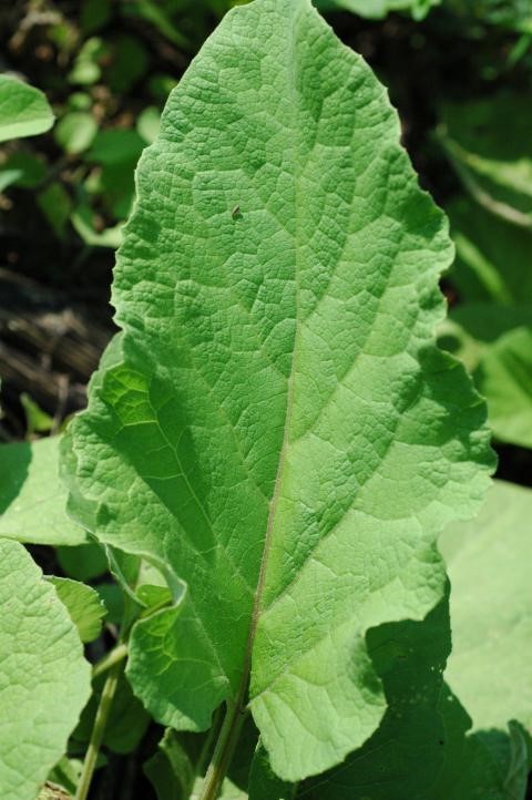 In its first year of development, common burdock develops as a rosette with leaves that grow anywhere from 4 to 14 inches wide and 6 to 18 inches long. In addition to their size, the plant’s leaves are distinguished by the following features: