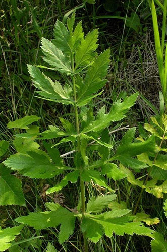 Photo Credit : Patrick J. Alexander, hosted by the USDA-NRCS PLANTS DatabasePlants grow up to 6 inches in the rosette stage. Sharply toothed or lobed, egg-shaped leaflets run along both sides of a common stalk. The lower leaves have leaf stalks (petioles), where the upper leaves attach directly to the stem. The hollow, deeply grooved stem can grow 2 to 5 feet tall.