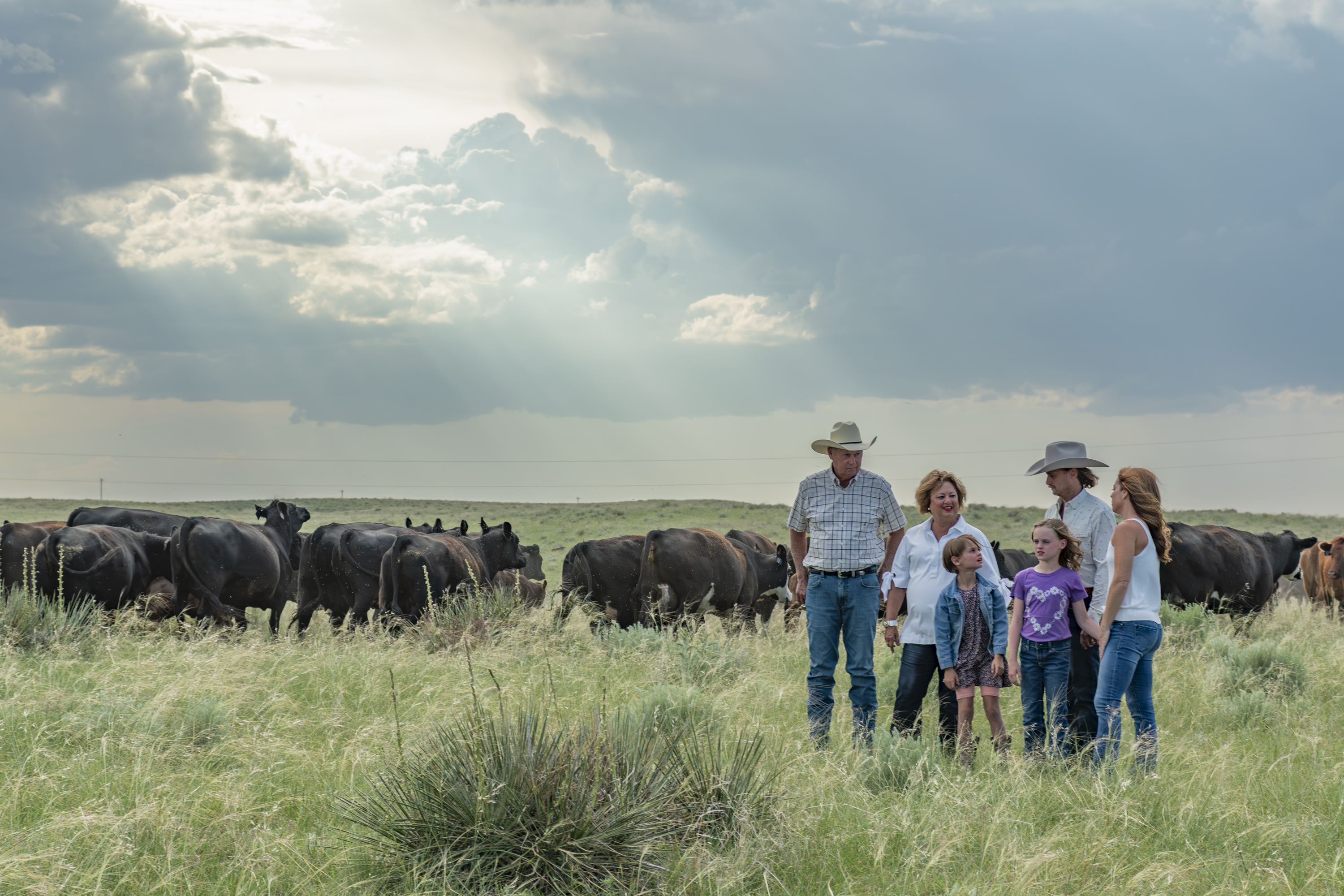 Jeff and Connie Pribbeno and their son and daughter-in-law, Logan and Brianna Pribbeno, own and operate Wine Glass Ranch in southwest Nebraska where they, on average, raise 2,000 cows and 3,000 stockers annually. The Pribbenos have 23,000 acres under their direct management, and they lease an additional 12,000 acres for grazing purposes. Growing a mixture of warm- and cool-season grasses, the rotational grazing model used on Wine Glass Ranch allows up to 95% of the ranch's land to be resting at any given point of the year, giving forage a chance to thrive and regrow.