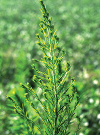 About: Horseweed, also known as marestail, is a tall-growing winter or summer annual. Its stem usually has short bristly white hairs with many alternate and lance-shaped leaves. It blooms June to August with numerous tiny, inconspicuous flowers.