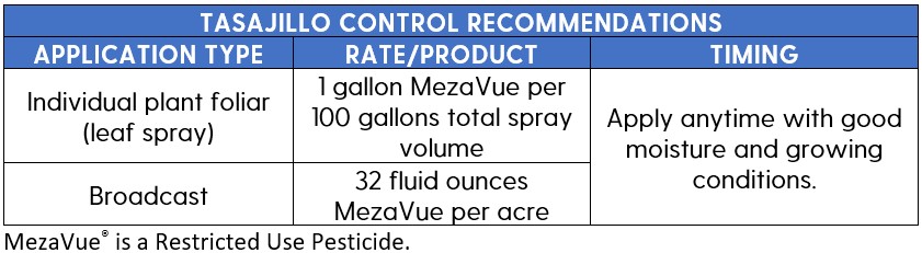 Tasajillo can be found growing on its own or in thick clumps. Often, it finds mesquite or other brush species to support its long stems. Hand-pulling can result in reinfestation from the broken plant pieces. A herbicide application provides the most effective control.