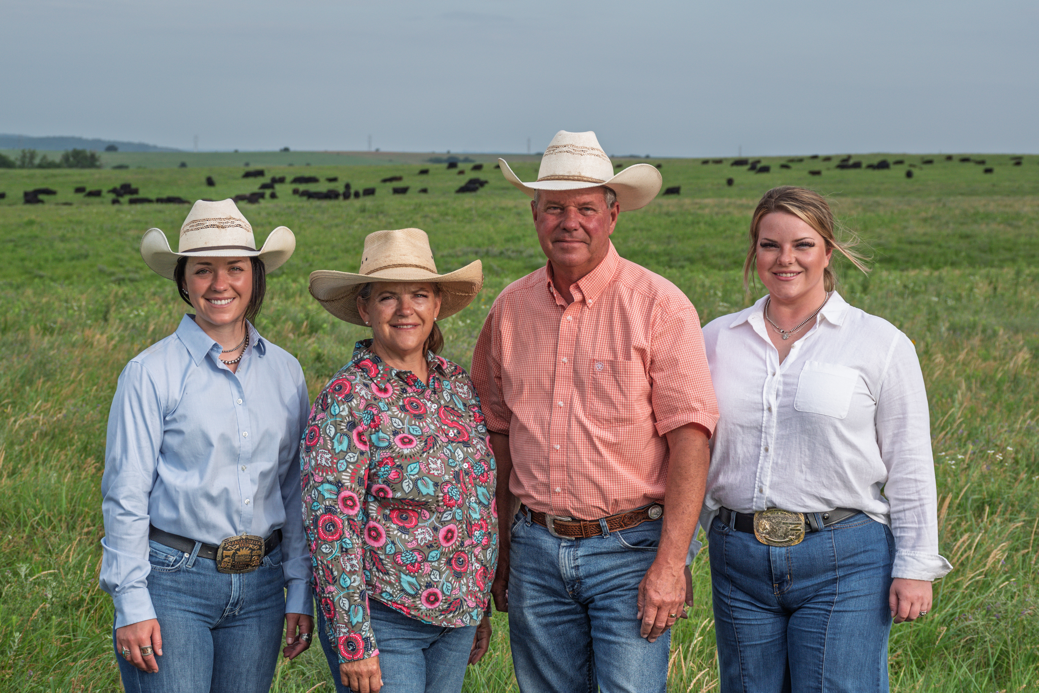 Downey Ranch, Inc., is owned and operated by Barb Downey, and her husband, Joe Carpenter, (center) along with their daughters, Laura (left) and Anna (right). DRI is located southwest of Wamego, Kansas.