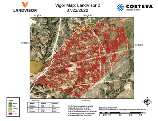 LandVisor technology, however, remotely monitors real-time variability of mesquite conditions. This eliminates the daunting task of manually checking trees and reduces chances of missing the longer application window.