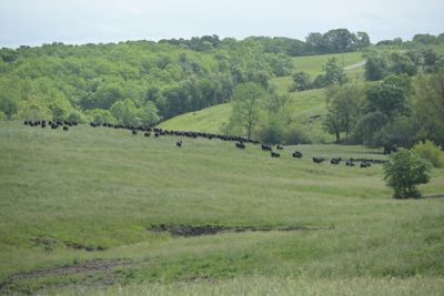 McCrea runs the fifth-generation crop and cattle enterprise near Maysville with his dad, M.L., and 16-year-old son, Luke. Throughout the year, mostly Missouri-sourced 400- to 500-pound calves arrive at the farm, which is about an hour northeast of St. Joseph. They’ll spend approximately five months grazing a dozen or so bluegrass and fescue pastures as calves. When calves reach 900 pounds, the McCreas weigh and sort them into load lots and send them up the road to a southwestern Iowa sale barn.