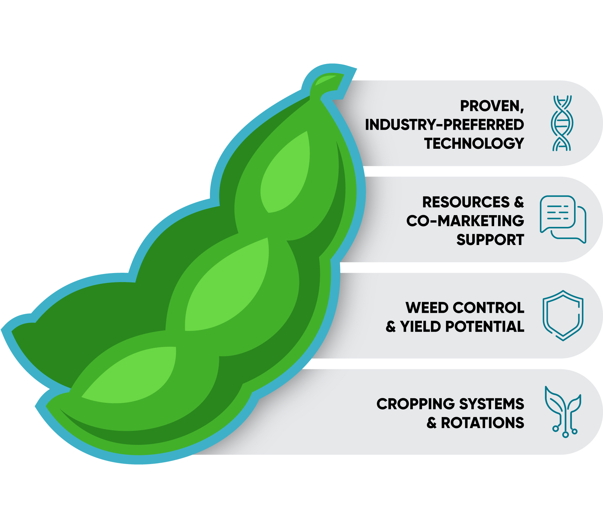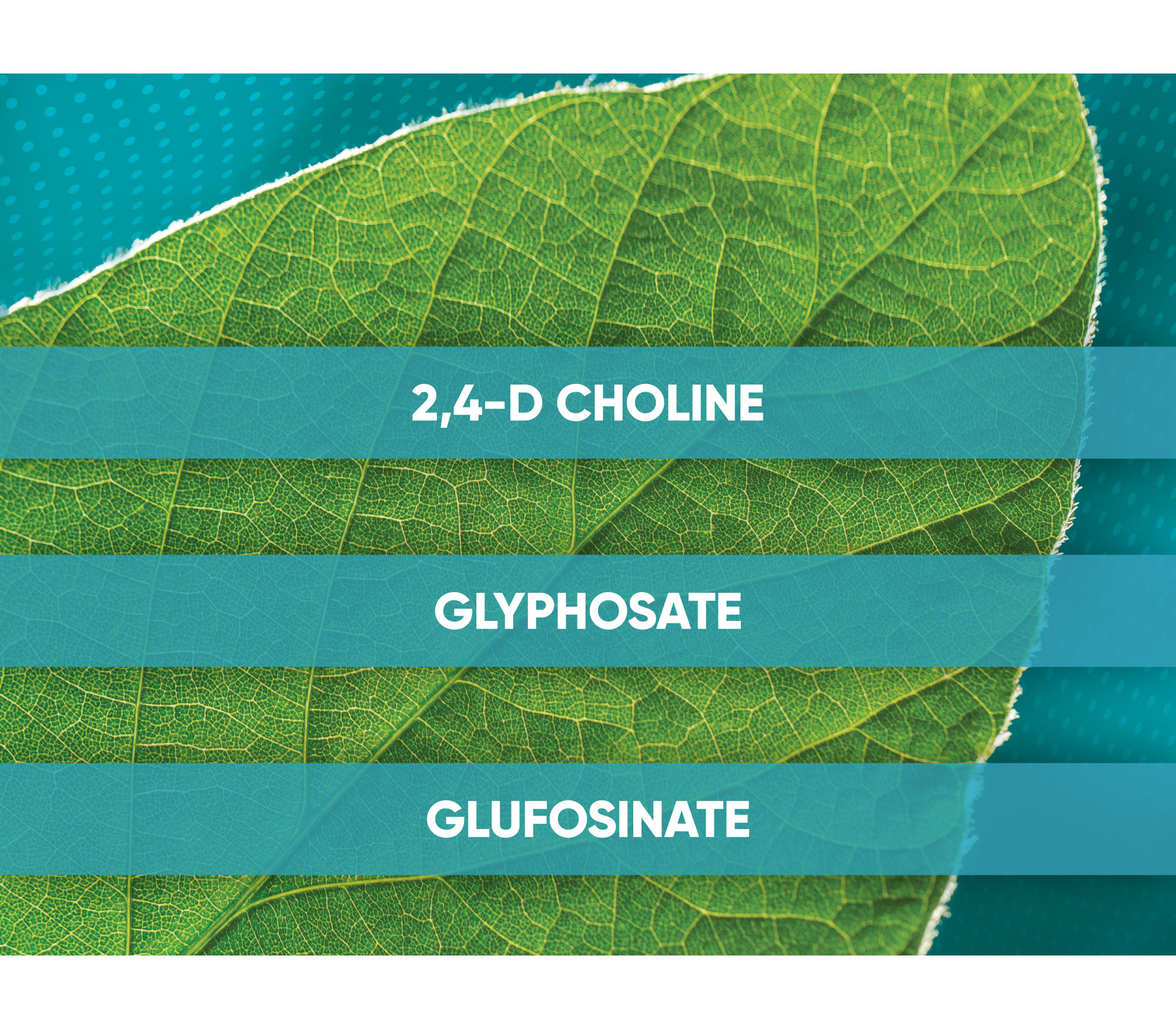 Three distinct herbicide tolerances — 2,4-D choline, glyphosate and glufosinate — create a complete weed control system for your customers.