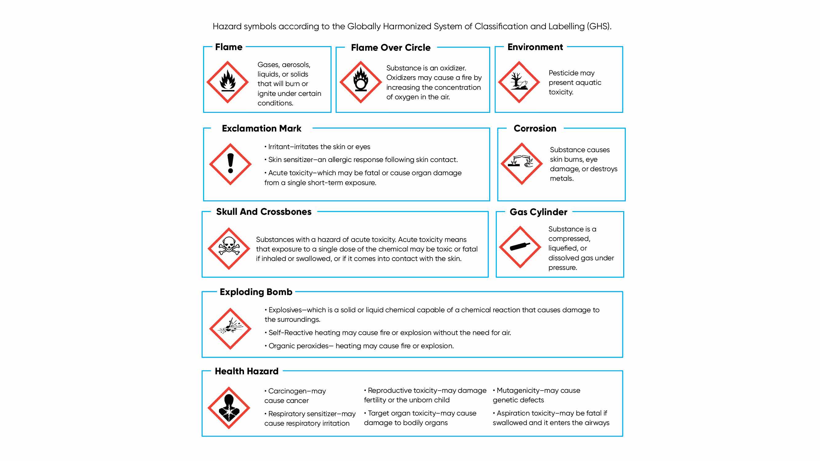 South Africa recently implemented the Globally Harmonised System of Classification and Labelling (GHS) for hazardous chemical products. This also includes crop protection products e.g., fungicides, insecticides and herbicides. The GHS is an international system that the United Nations (UN) established for the unified classification and labelling of chemicals.